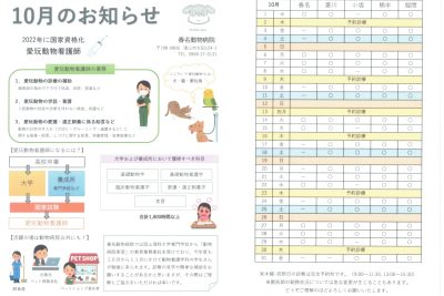 朝夕は涼しくなり、過ごしやすくなってきましたね。 一方で、気候の急な変化により体調を崩す動物たちも増えてい…