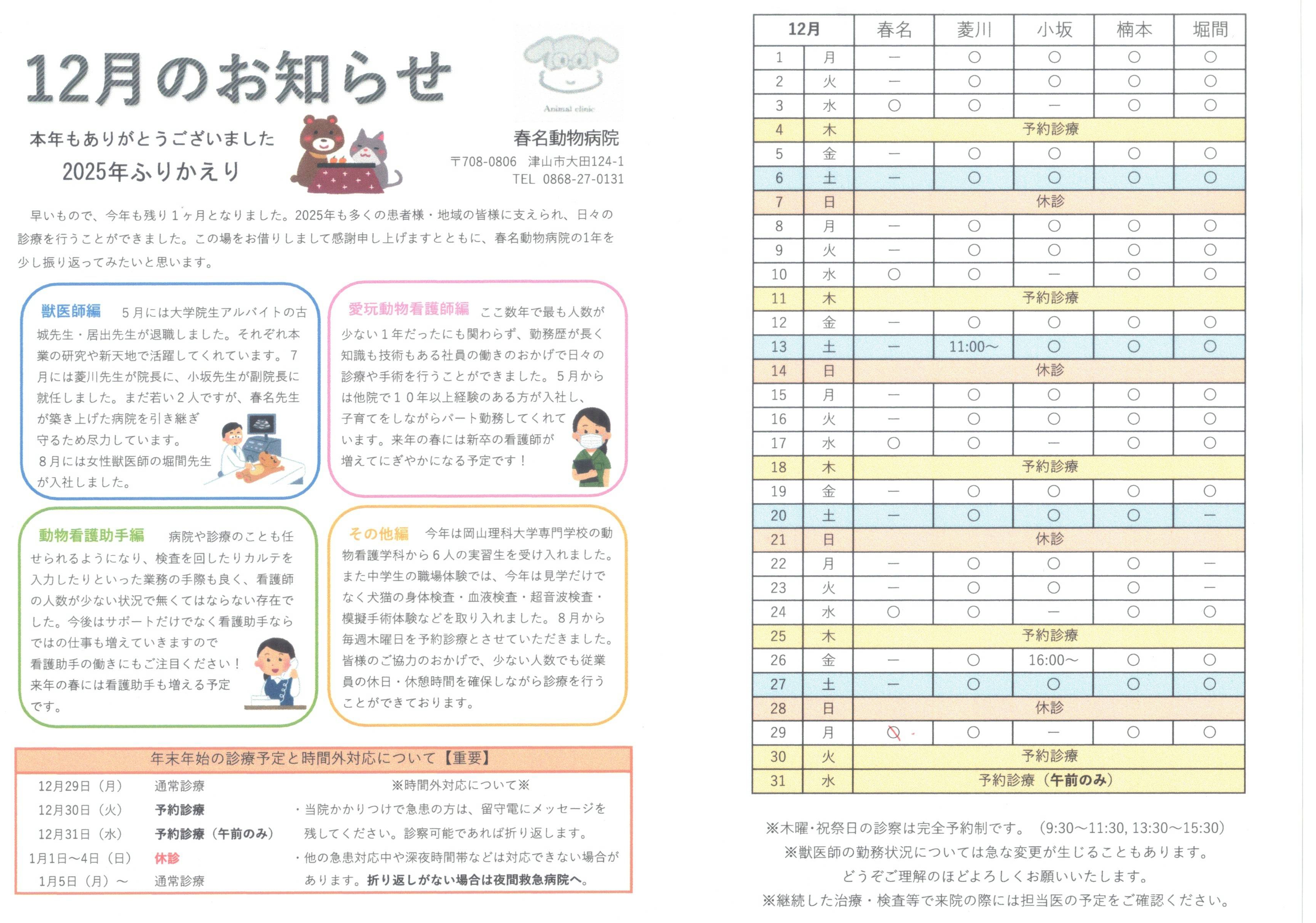 2025年は春名動物病院にとって、変化の大きい1年でした。