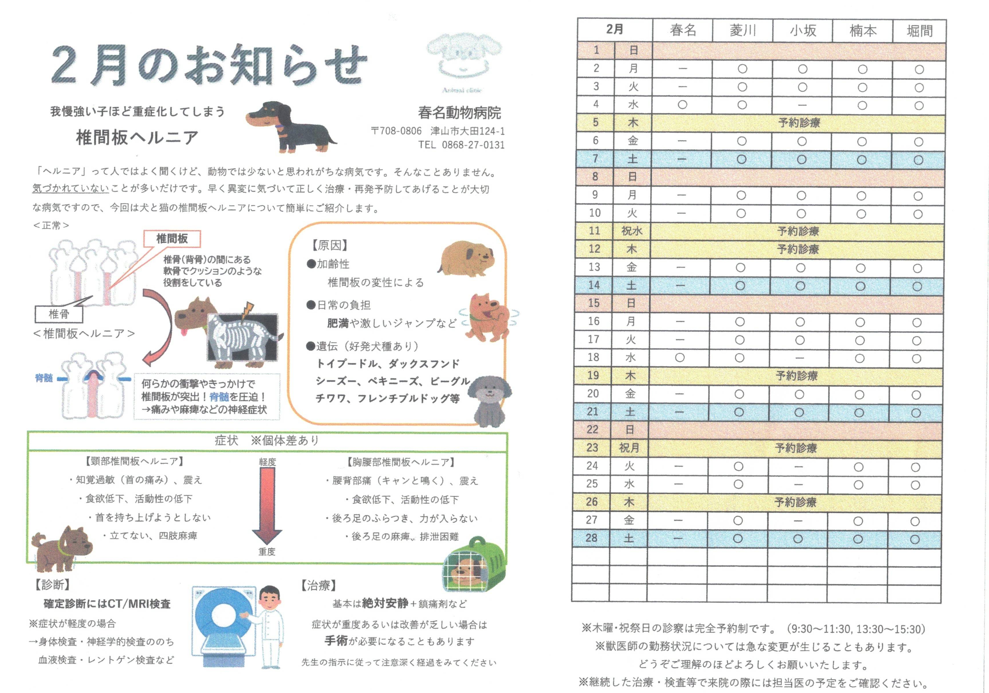 さて、2月のお知らせでは椎間板ヘルニアを取り上げました。